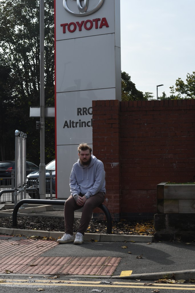 This image is crap. The lines in the road distract from the subject too far, along with the cars in the back, creating tension all along the back of the image. The placement of the subject is also off because of the line that is obstructed from the leg of the subject into the lamp post in the background. To add to this, I would have moved back further than this, but the road and barrier were too close.